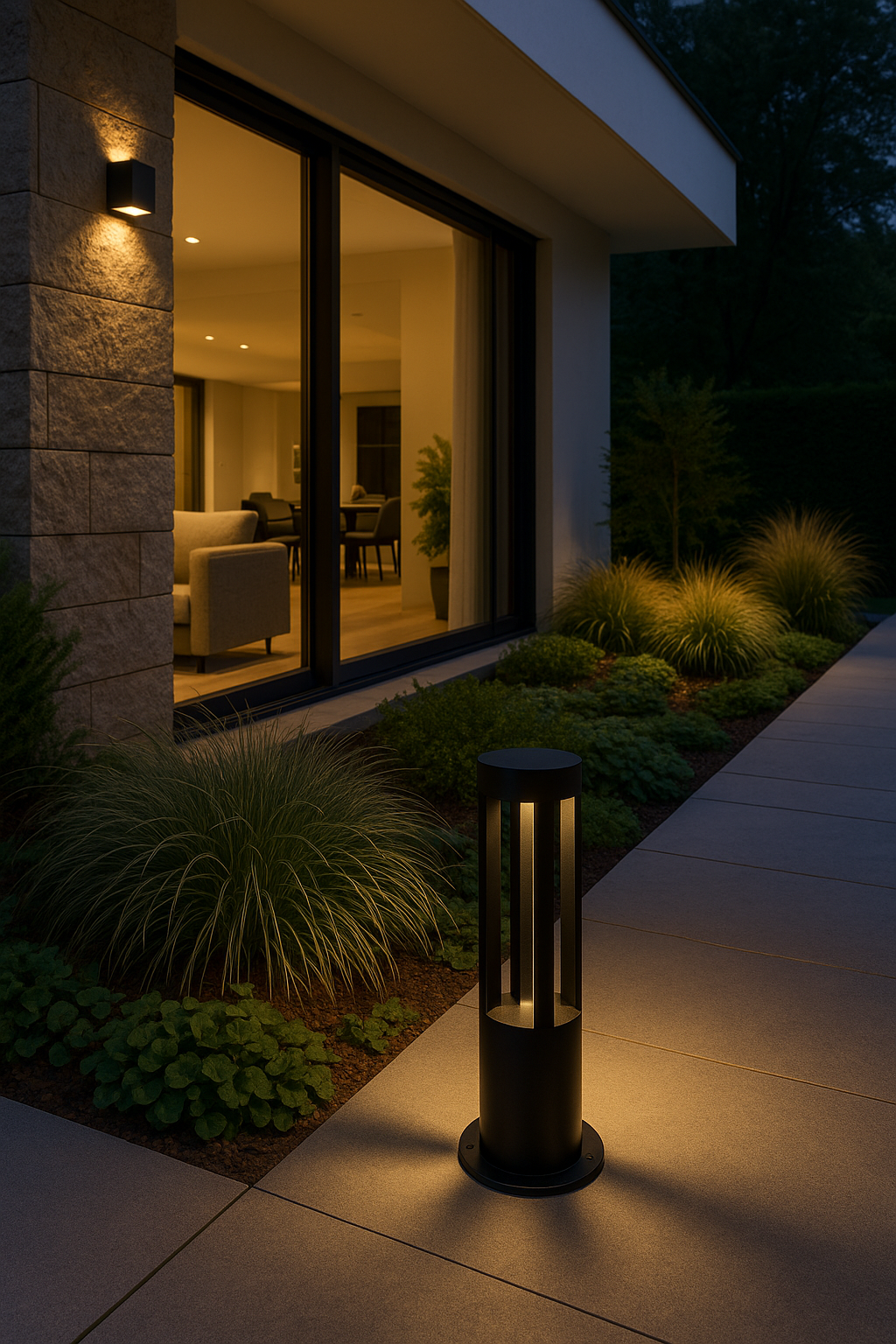 Baliza LED para jardín, 7W, luz muy cálida 2700K. Color negro. Altura 580mm, diámetro 105mm. Voltaje universal 85-265V.
