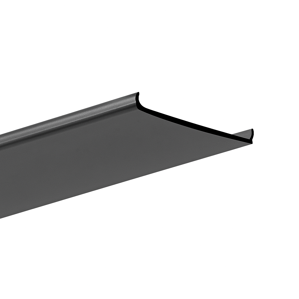 Difusor LIGER-45 de color negro para perfiles Klus compatibles. Ofrece un ángulo de luz específico y oculta la cinta LED apagada.