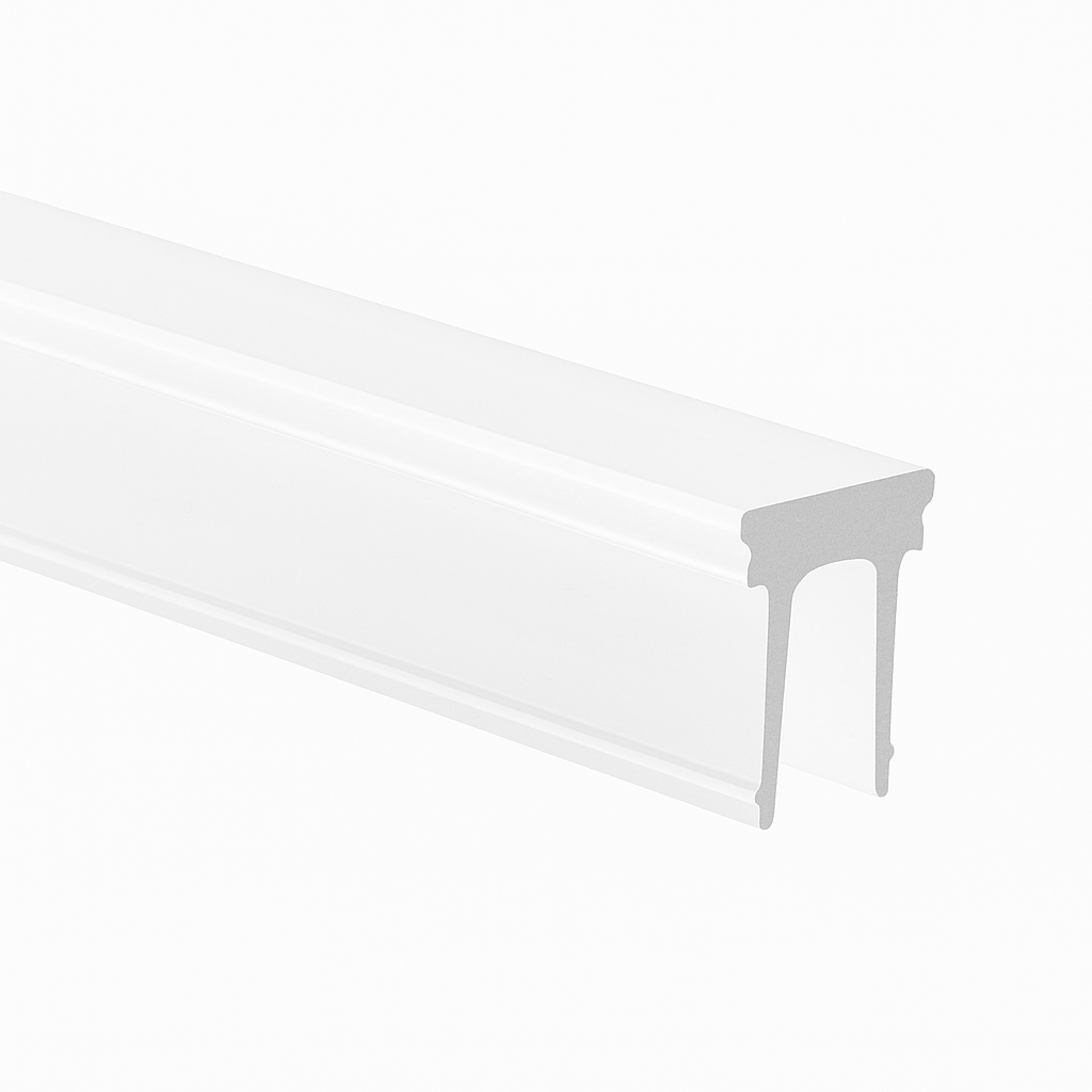Difusor con acabado Frost (mate) para perfil de aluminio Klus modelo HR-LINE. Proporciona una luz suave y difuminada. (Artículo posiblemente descontinuado)